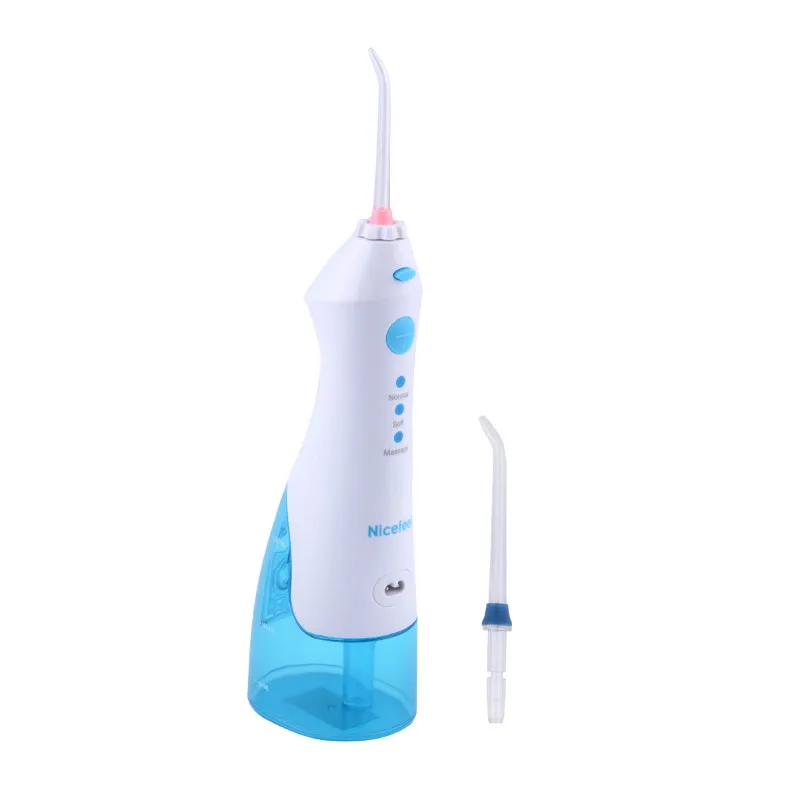 Насадки для чистки водной нитью включают три классических струйных наконечника для общего использования, один наконечник для поиска налета для удаления зубного налета, один наконечник для пародонтальных карманов, один ортодонтический наконечник для скоб и один наконечник зубной щетки для чистки вручную зубы, всего 7 вершин. 90-секундный запас воды включает 60-секундный таймер и 30-секундный кардиостимулятор.