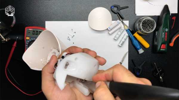 Когда клей получше застынет (еще через пару минут), то можно собирать освежитель воздуха, укладывая провод так, чтобы он не мешал сборке.