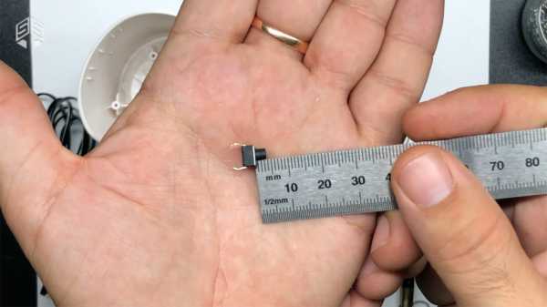 Кнопка самая распространенная в продаже или в старом барахле. Высота сердечника кнопки 3.5 мм, не менее. Но и не более 4.5 мм, иначе будет сильно выступать за корпус освежителя. Например вот такая кнопка L-KLS7-TS6601-7.0-180 (Кнопка тактовая 6х6мм, h=7мм). Типоразмер 6×6, полная высота кнопки (корпус и сердечник) 7 мм, диаметр сердечника 3.5 мм.