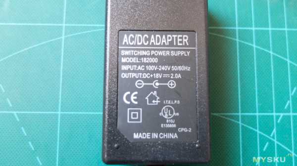 Блок питания, судя по шильду, выдает 18В и до 2A, не трудно догадаться что мощность гравера не более 36 Вт.