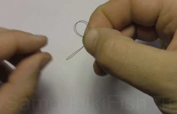 Теперь зажимаем леску и просовываем хвостик в петлю. Из такого положения тянем за основную леску, пока петля практически не затянется.