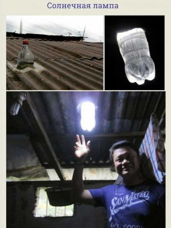 Еще один оригинальный вариант использования пластиковых бутылок — изготавливать из них солнечные лампы.