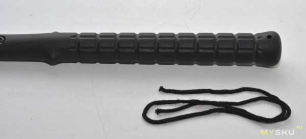 Рукоятка рифленая, есть отверстие под темляк. Жалкий комплектный шнурочек смотрится дешево, сюда просится моток паракорда.